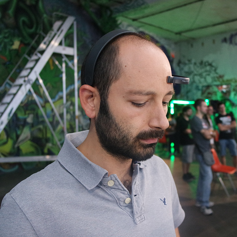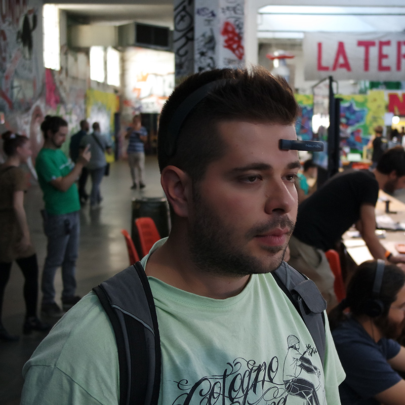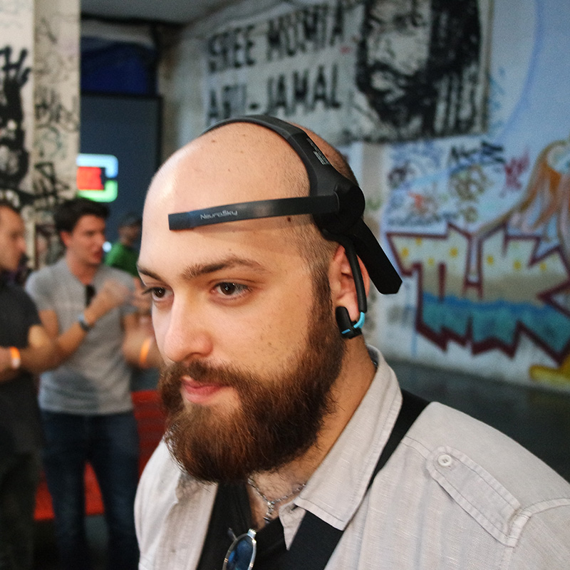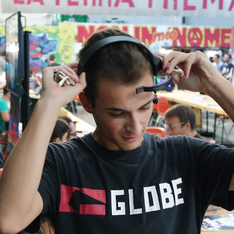 Penso sia doveroso iniziare questo post con un ringraziamento pubblico ai ragazzi dell’organizzazione per averci invitato e per aver gestito tutto lo svolgimento dell’evento in modo assolutamente impeccabile. E’ stato un week-end ricco di emozioni, abbiamo ricevuto tantissimi complimenti per il nostro progetto e altrettanti sono stati gli “in bocca al lupo”, fondamentali per spronarci a proseguire in quello che stiamo facendo. Lo stupore e l’entusiasmo delle persone che ci sono venute a trovare rende più dolci i sacrifici e meno pesanti le ore sottratte al sonno per buttare giù del codice nel tentativo di migliorare continuamente le nostre ricerche su project Arale. In tante occasioni passate mi era stato chiesto se il controllo tramite stato mentale del Lego Mindstorm potesse andare oltre al semplice “lo spingo avanti con la concentrazione” e finalmente ora è possibile. Mescolando concentrazione e battito oculare siamo riusciti a muovere il rover in modo libero e autonomo in uno spazio aperto. Una soddisfazione incredibile per noi e per chi ha potuto provare questa esperienza.
